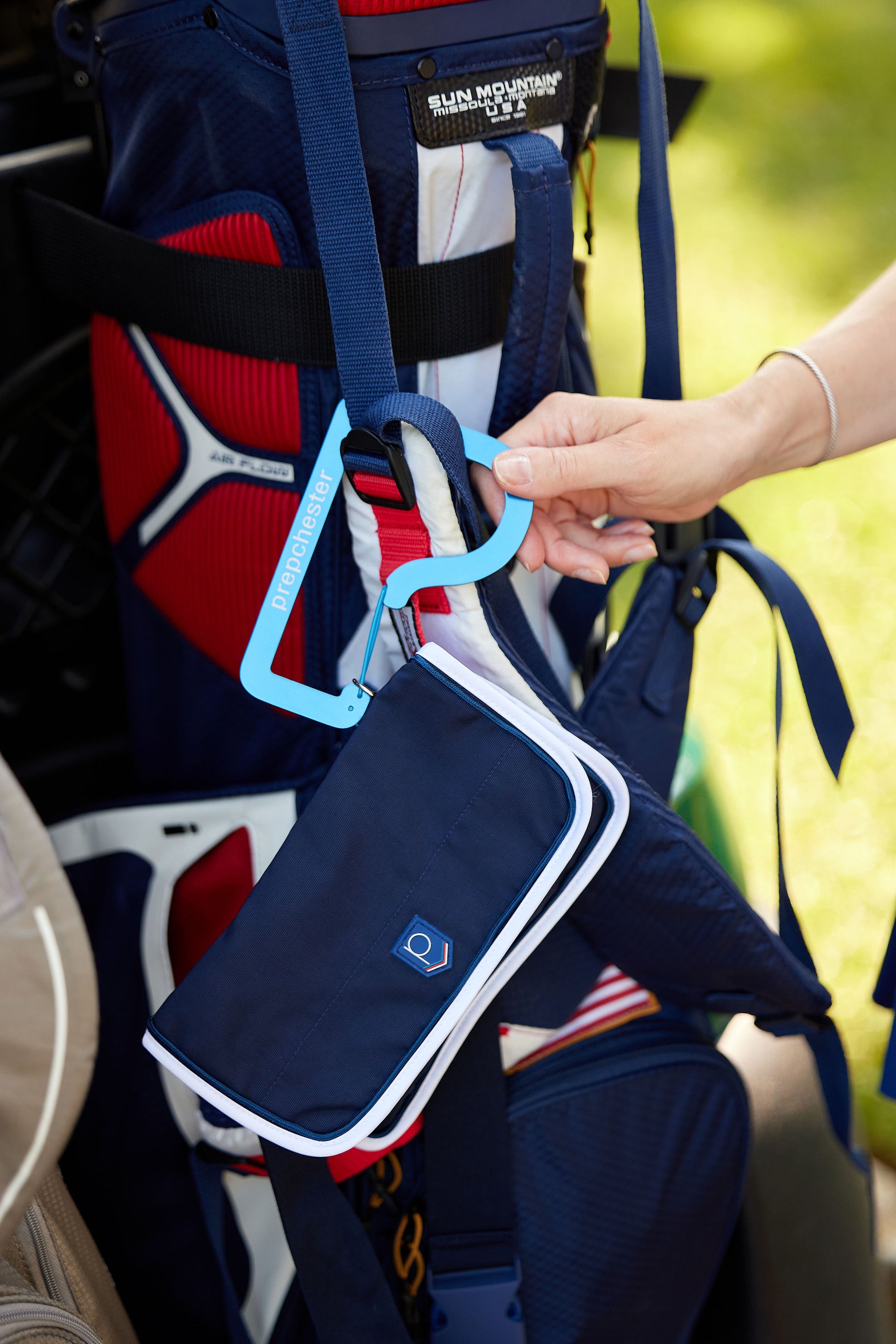 The Prep It Clip is your modern stylish custom P shaped carabiner for on and off the course and courts. Clip to your golf bag to hold your towel and Birdie Golf Belt Bag when not in use. This tiny yet mighty clip holds up to a dozen caps or visors neatly organizing your hat collection saving space in your locker, closet, or mudroom.